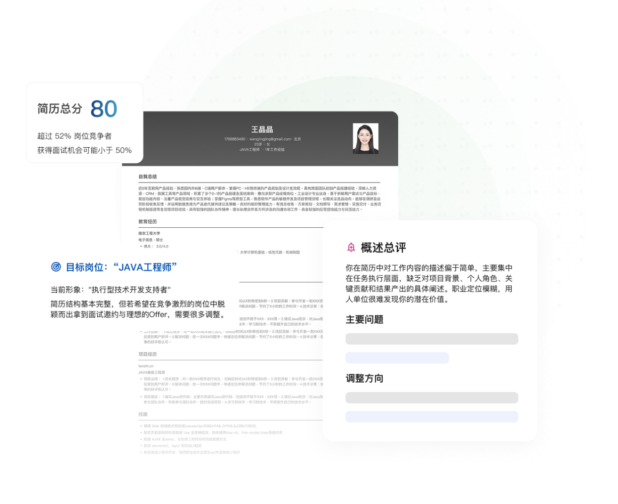- 提升投递成功率:通过结构化优化建议和示例,让你的简历更具竞争力,更快打动HR。
